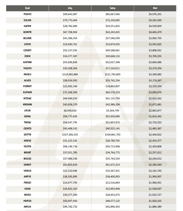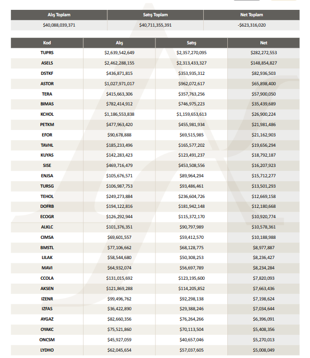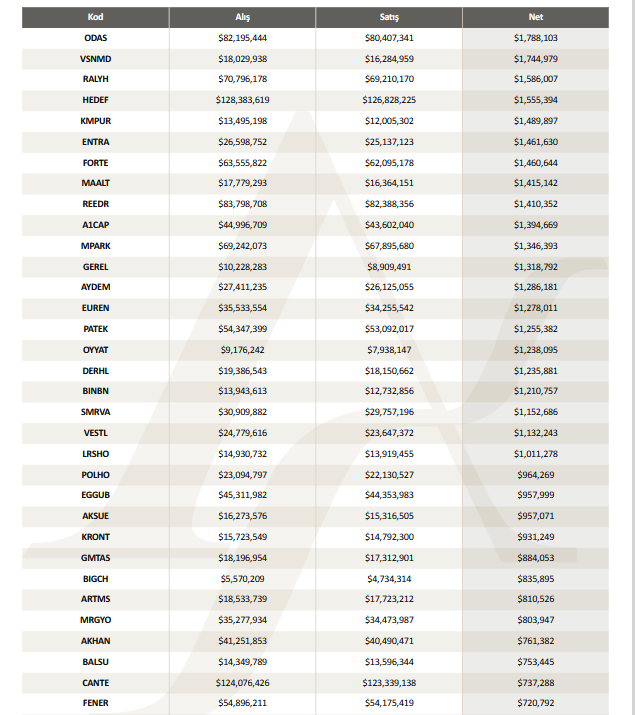 Yayımlanan rapora göre, hisse senetlerinin alış, satış ve net fiyatları şöyle: